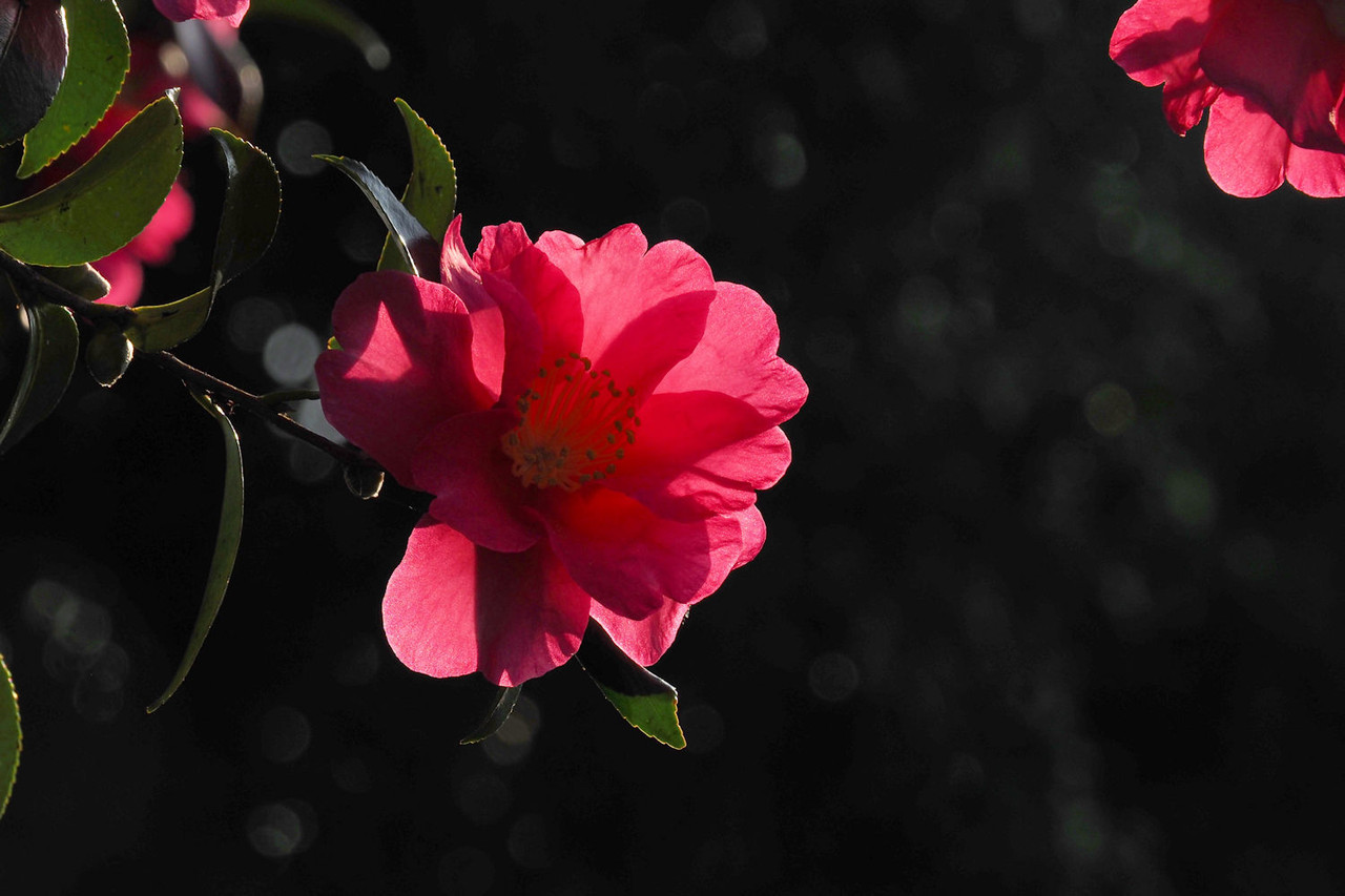 近くの公園で出合った山茶花の花逆光で撮影してみました。