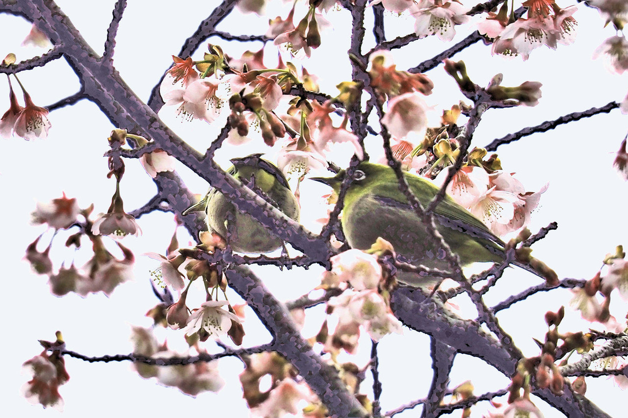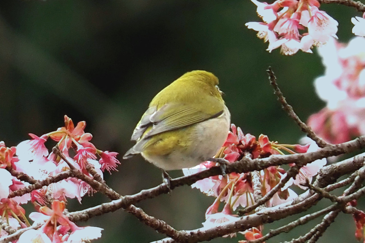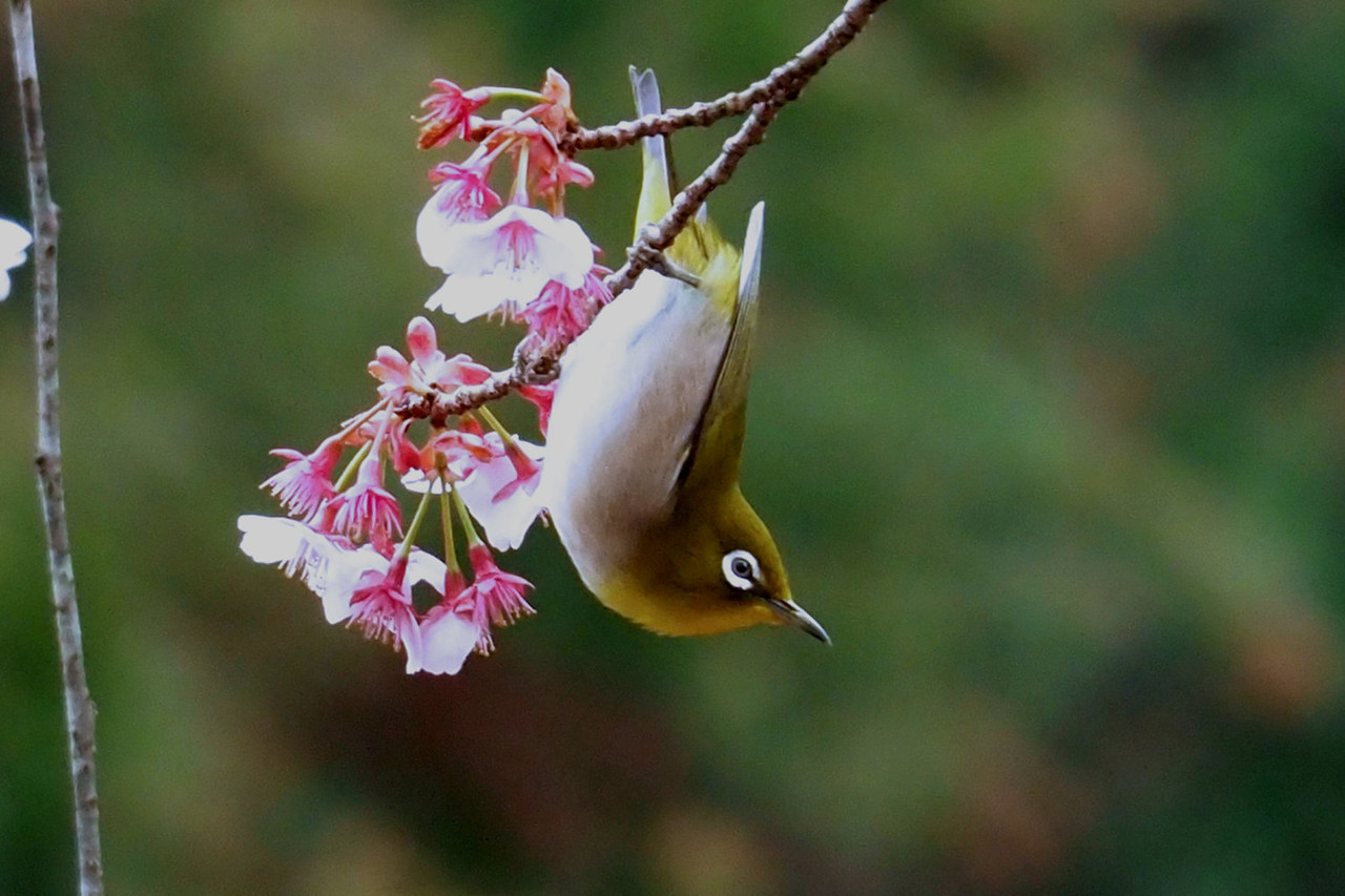 望遠レンズを通して見えるメジロの愛くるしい姿に癒されながらの撮影です。
