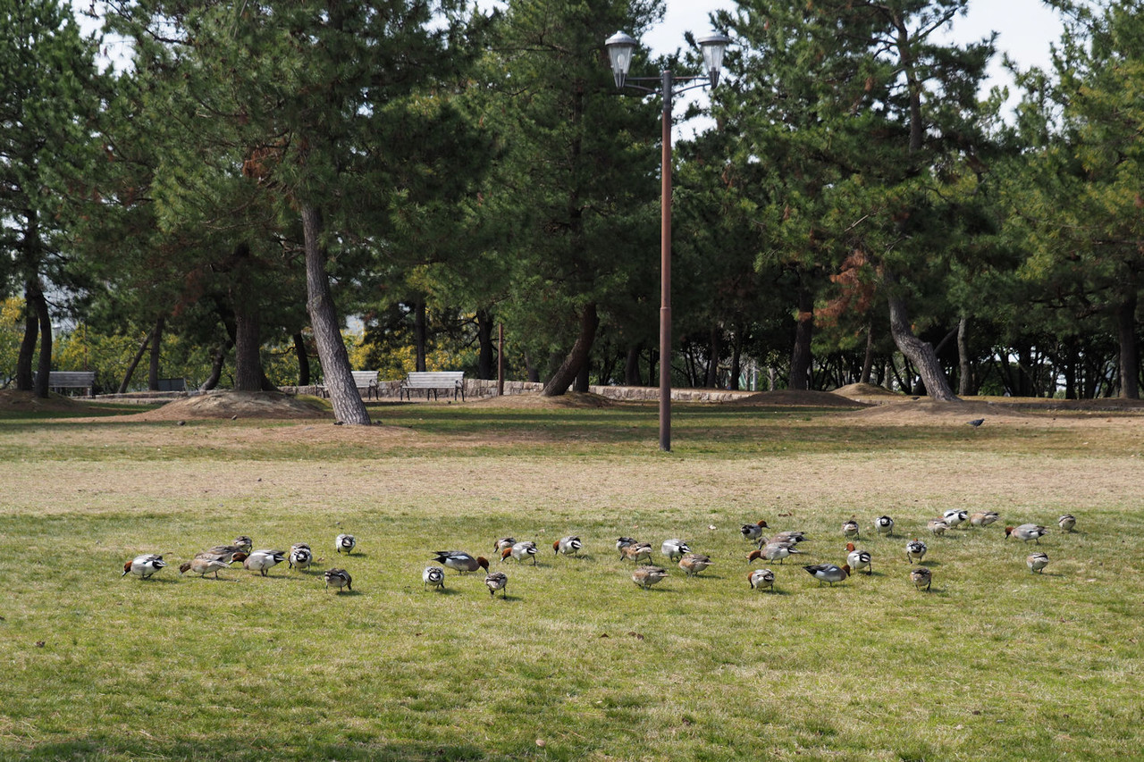 この日は湖岸の雑木林では、美しい鶯(ウグイス)の鳴き声が聞こえ、湖岸に目をやると浜千鳥(カモ)たちが群がっていた。