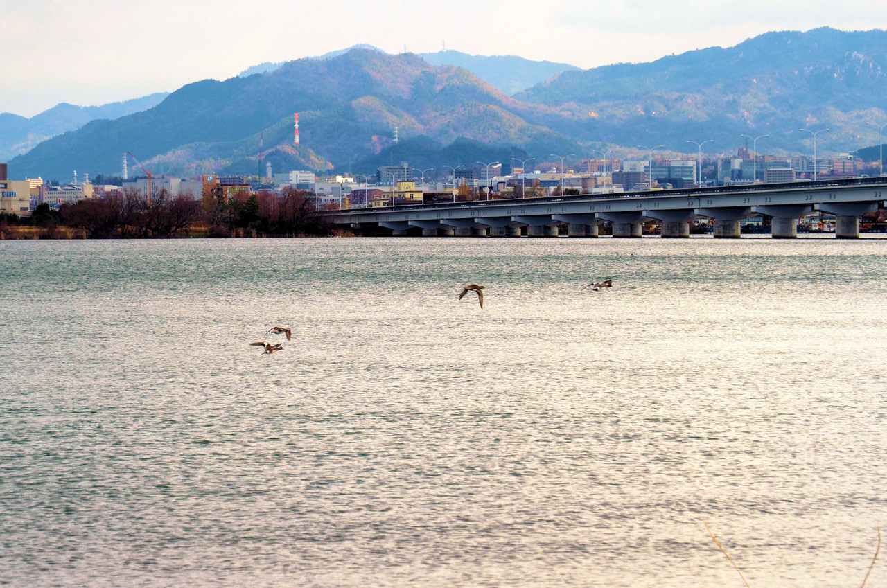びわ湖の岸辺にはたくさんの鳥がやって来る。湖北の方に行くとコハクチョウやイヌワシなどの渡り鳥で有名だが、びわ湖南部に渡り鳥はやって来ないが、代わりにいろんな水鳥の楽園でもある。