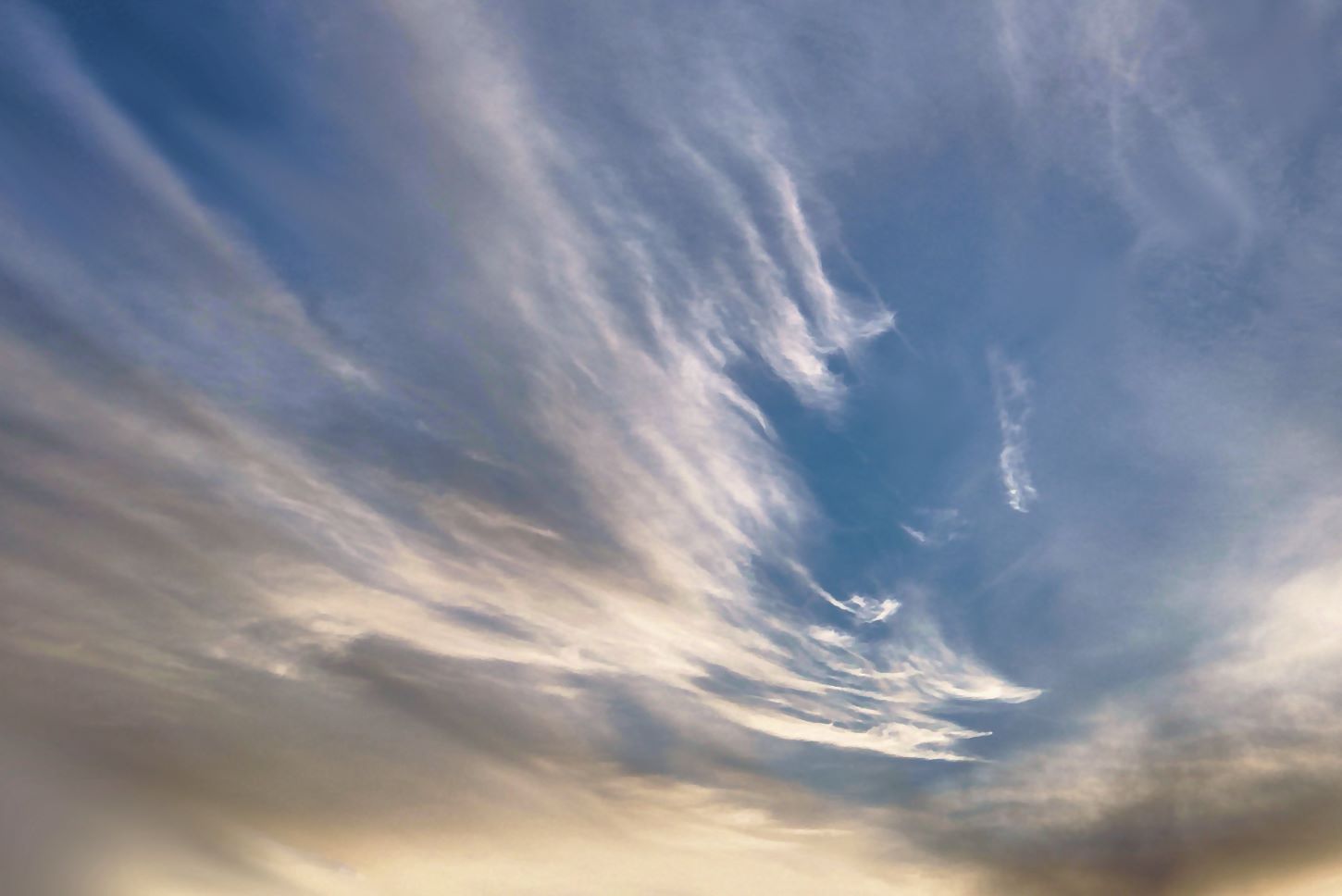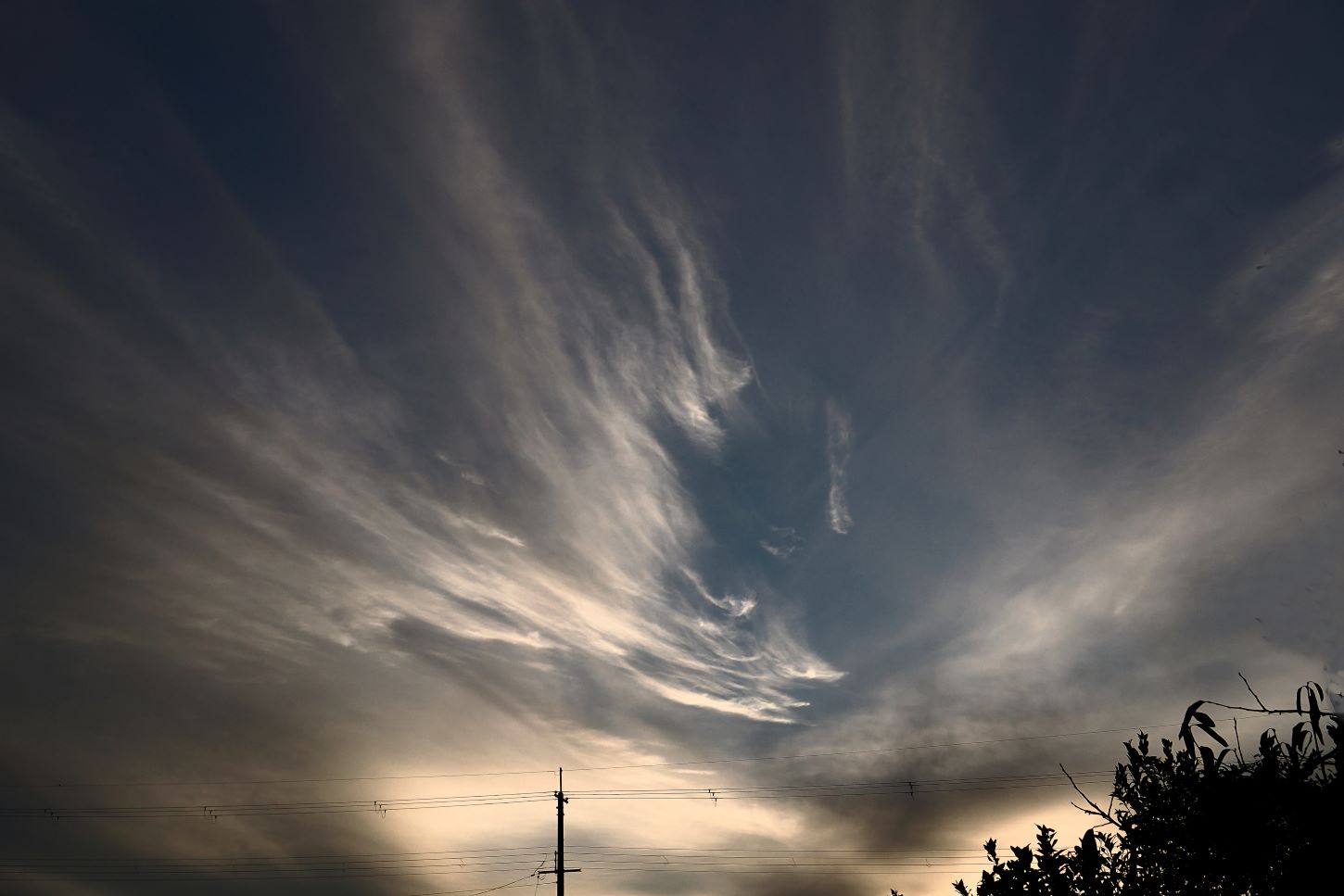 東の方角から長い尾を引きながら伸びる秋のすじ雲