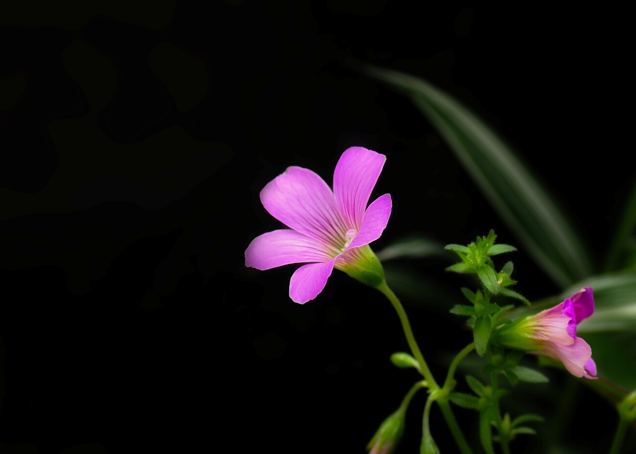 名前の「ムラサキ」は花びらの色から、「カタバミ」は夜に葉を閉じる様子が