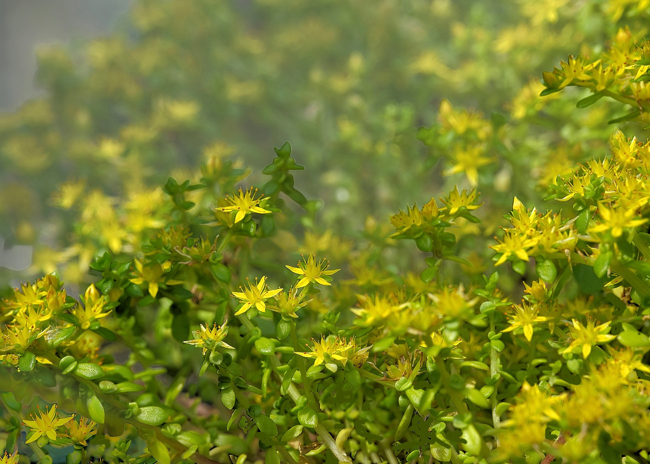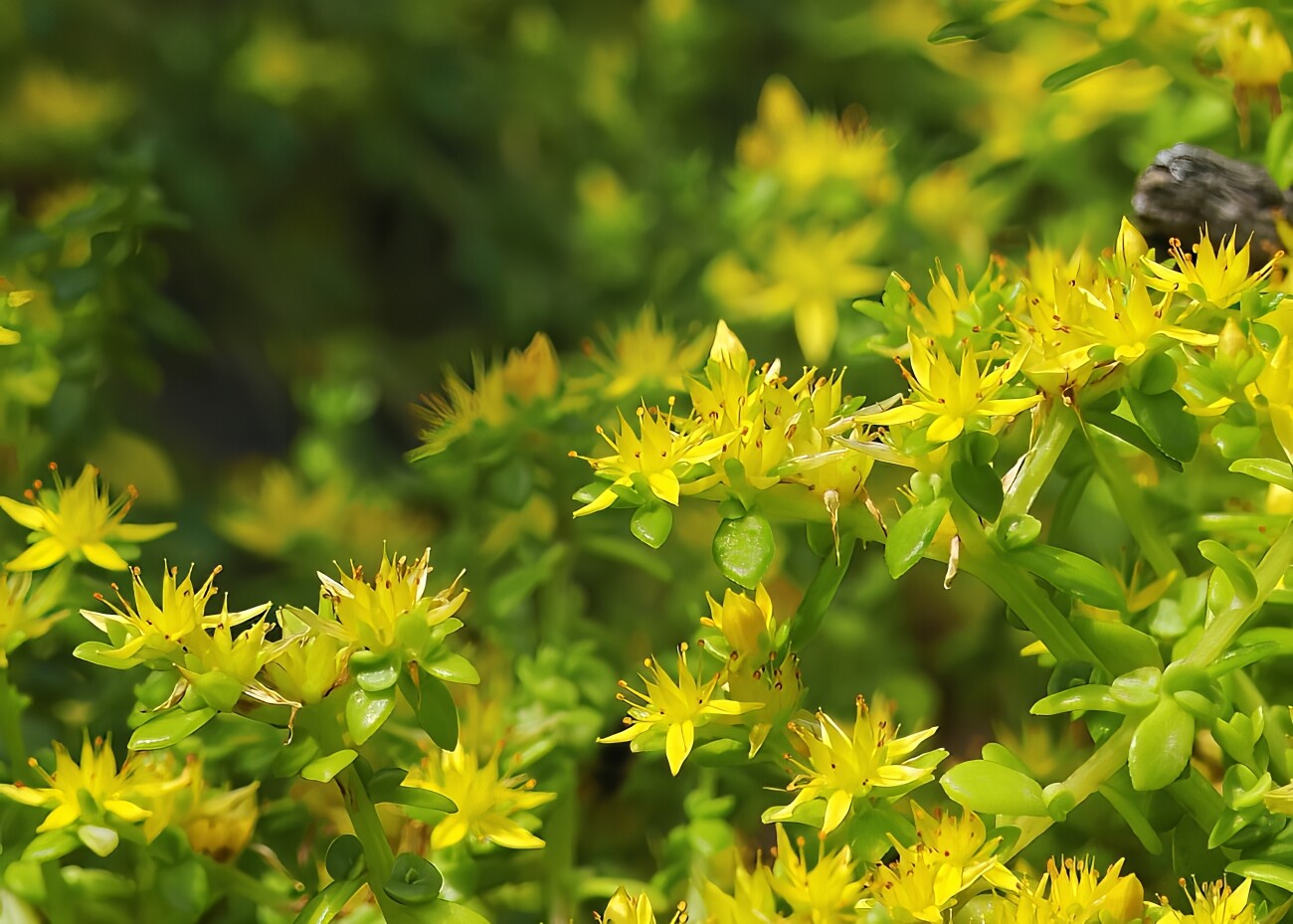 庭の隅々に緑の絨毯を広げ始めた「マンネングサ」(学名:セダム)。野鳥によって運ばれ、その生命力あふれる姿は、他の雑草を抑える頼もしい存在となっています。6月には直径5ミリほどの黄色い花を咲かせ、その繊細な美しさが際立ちます。一年中鮮やかな緑を保つこの多肉植物は、ホームセンターなどでも手に入るそうです。