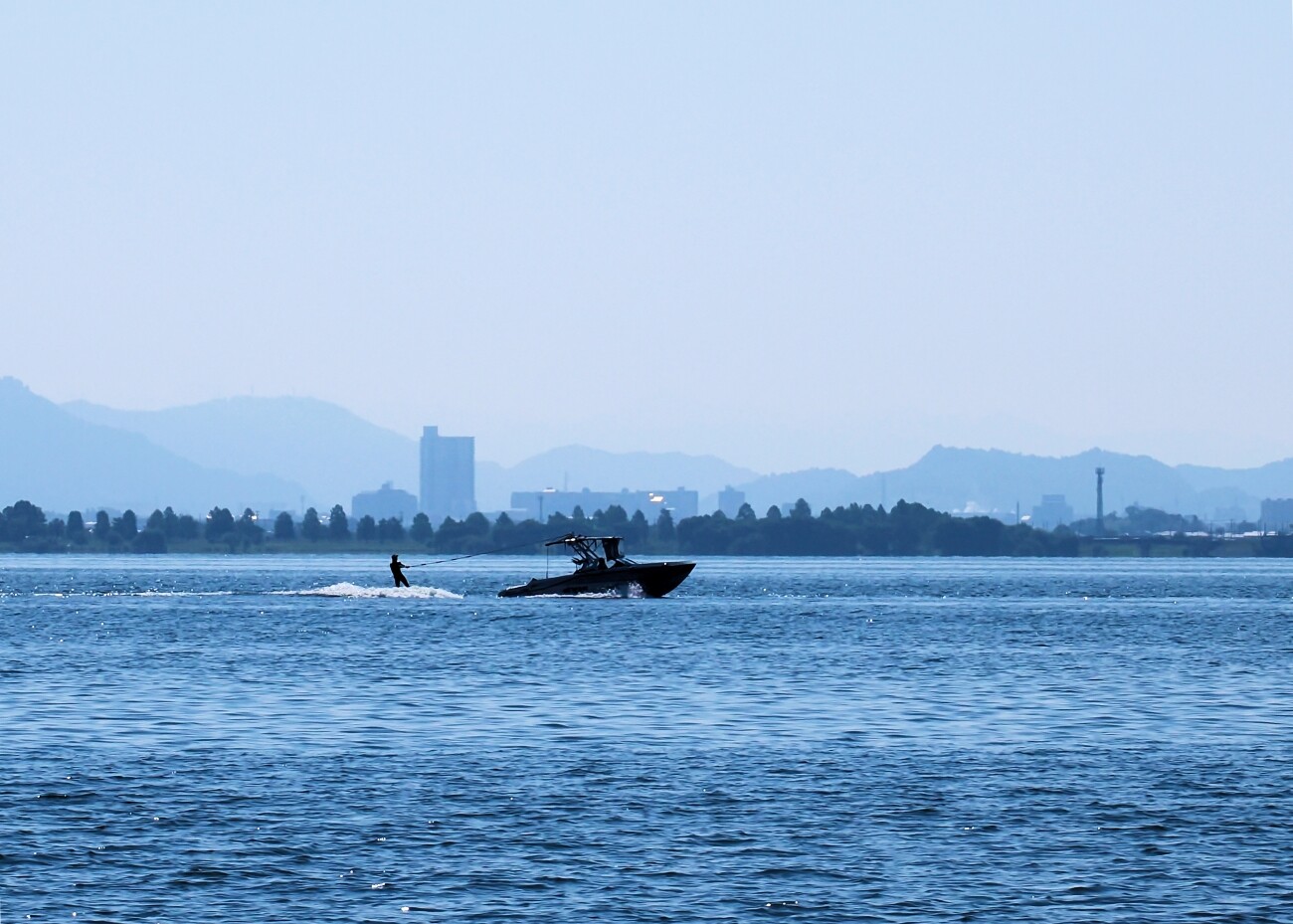 今度は沖合に水上スキーを楽しむ人たちの姿が。