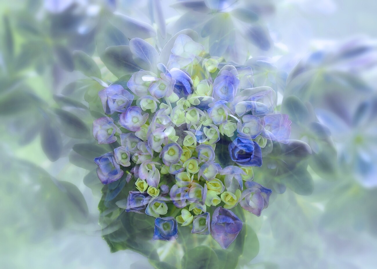 先ほど紹介した紫陽花と多重露出で重ね撮りしました。