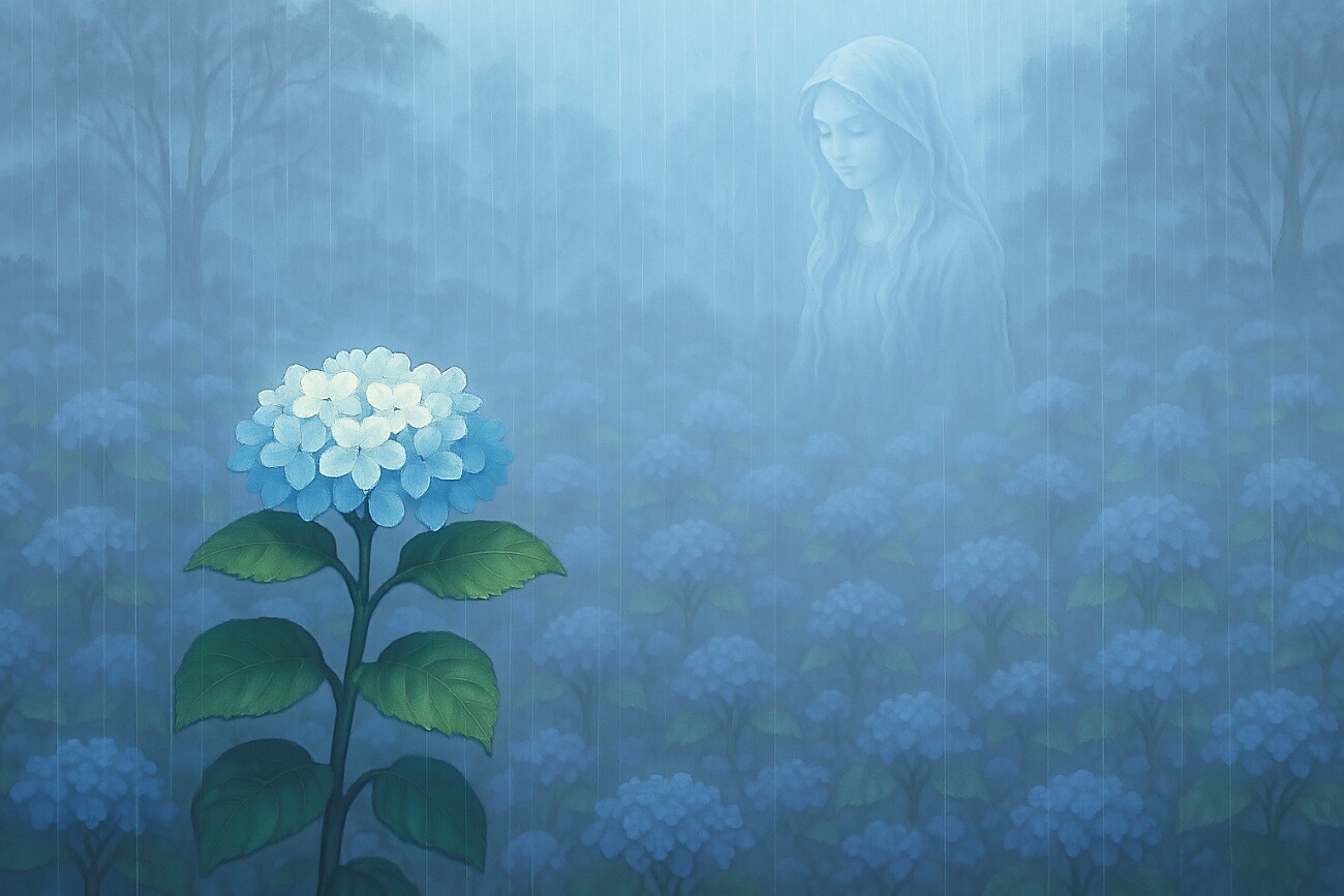 その園には、いくつもの紫陽花が咲き誇り、雨の日にはその輝きが増していき、そこには「雨の精霊」と呼ばれる存在が宿ると噂されていました。