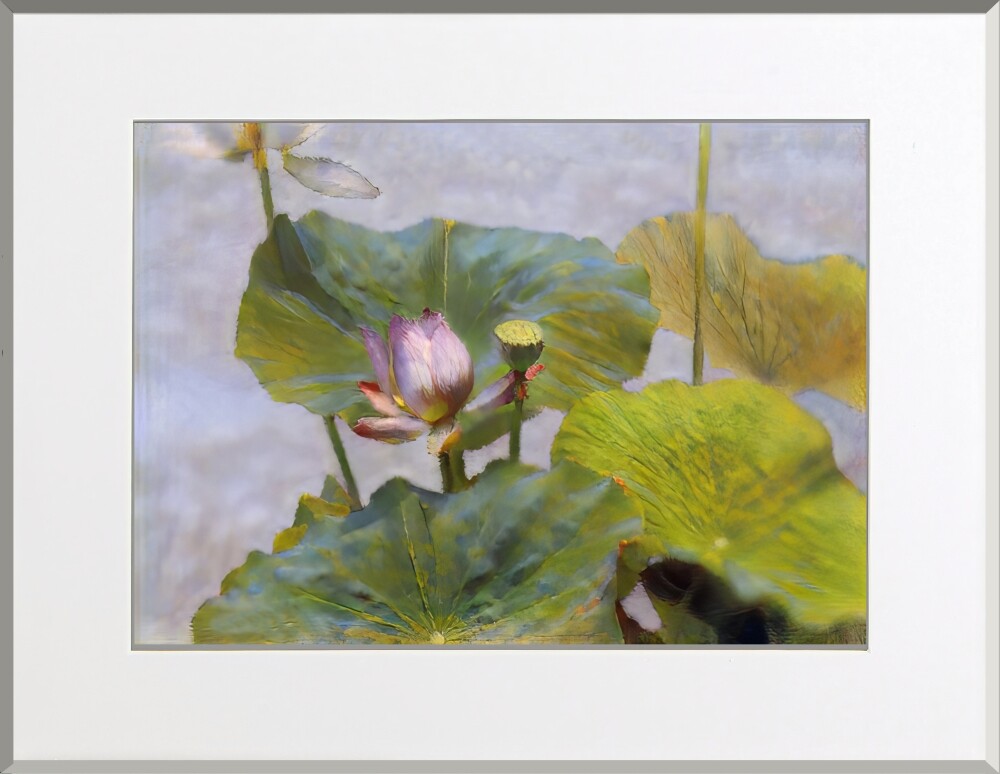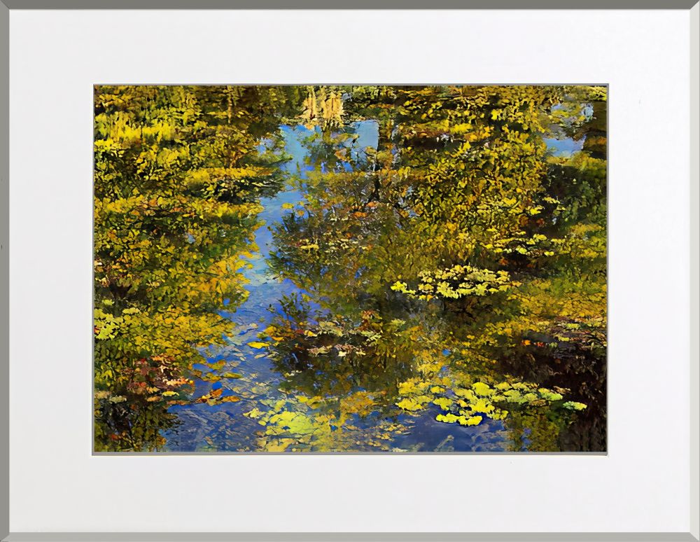 映り込む空や緑が景色に深みを与え、静かさのなかに生命の営みを感じさせる少し複雑で味わい深い構図となりました。