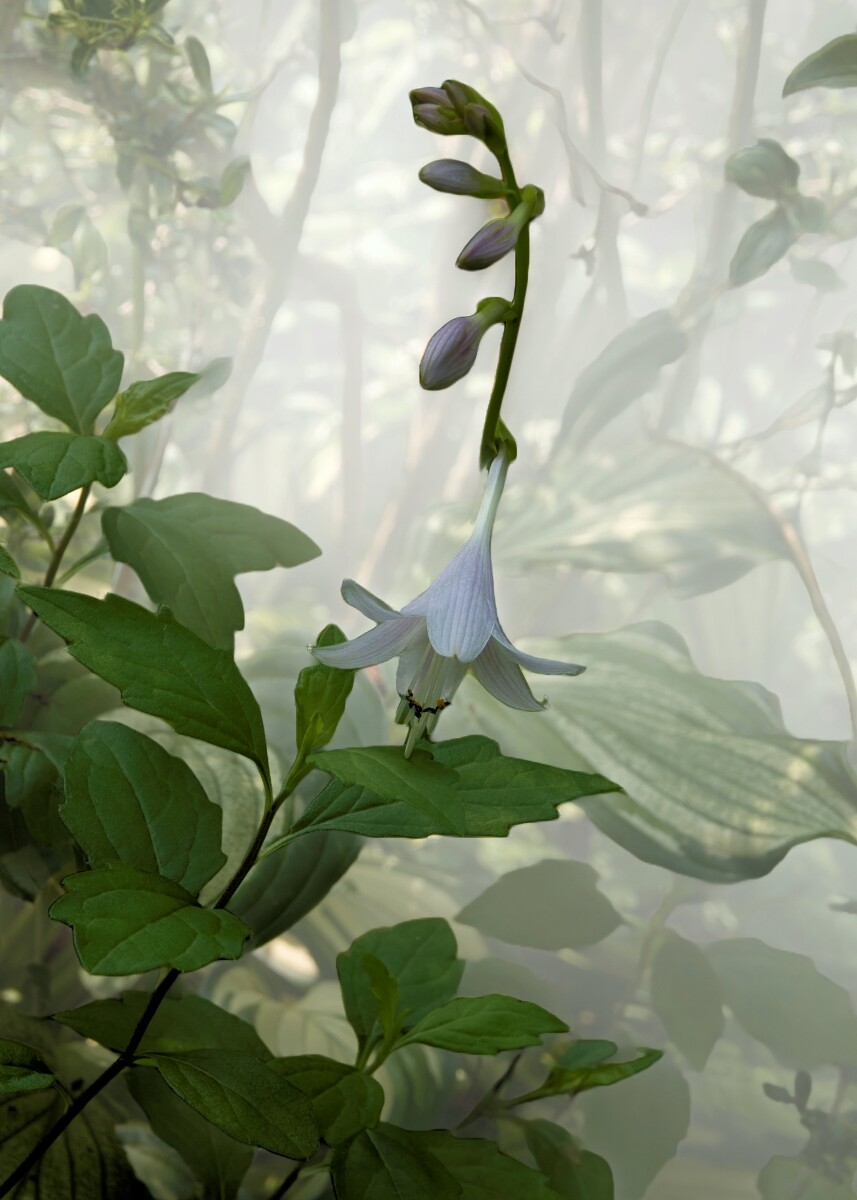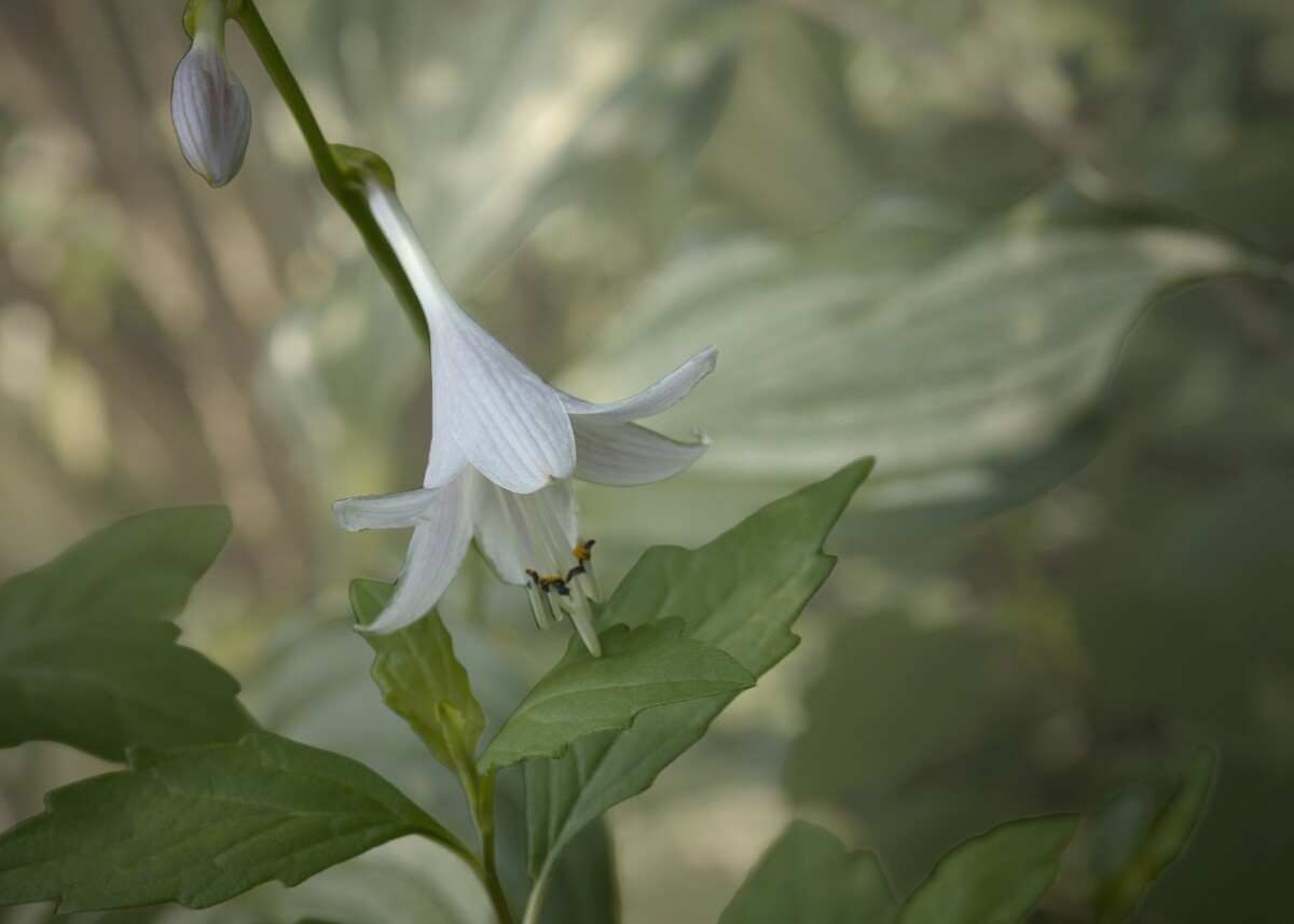 朝露に揺れながら、静かに咲くギボウシの花。