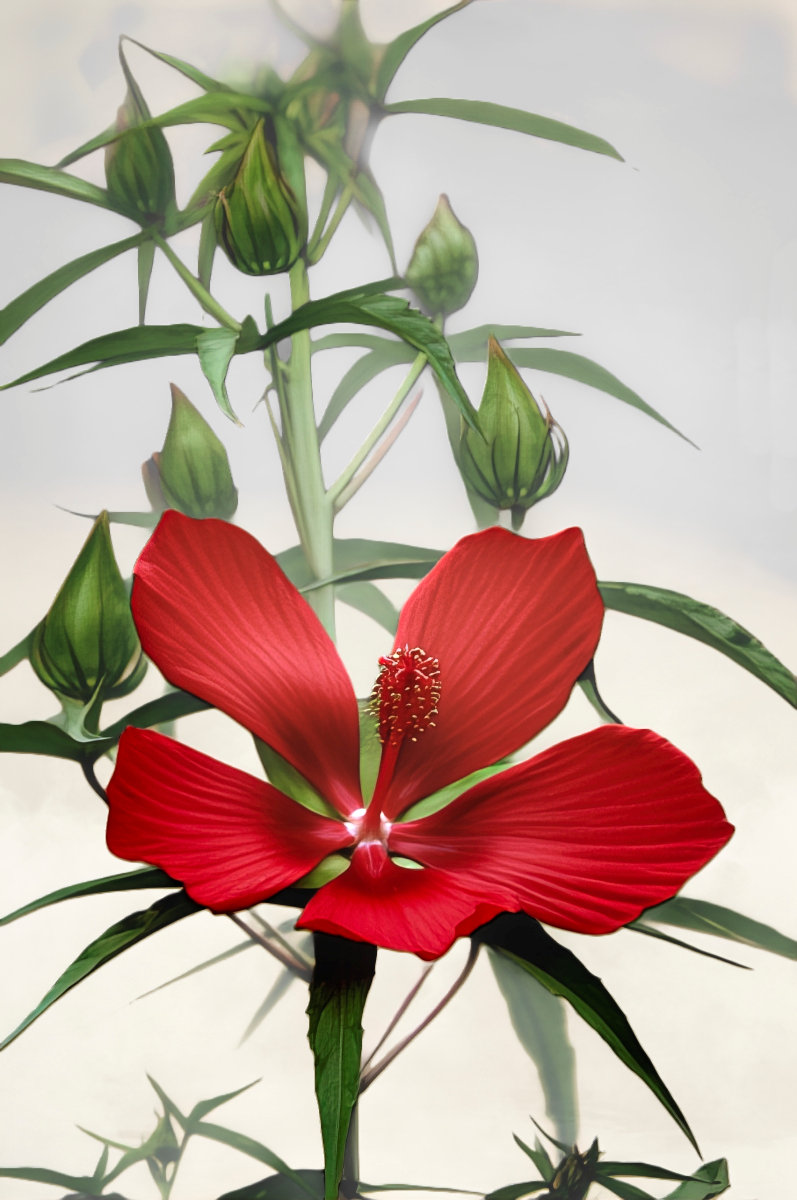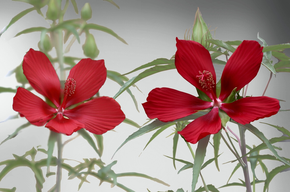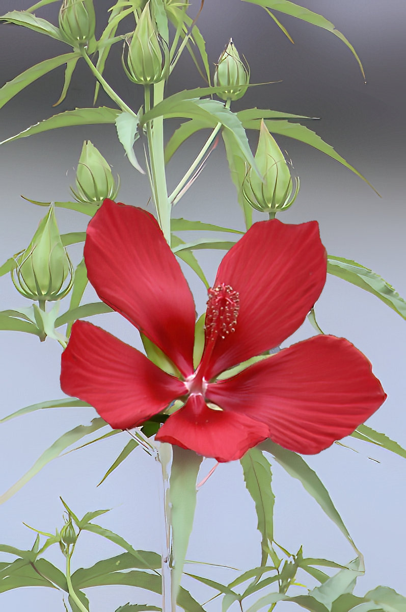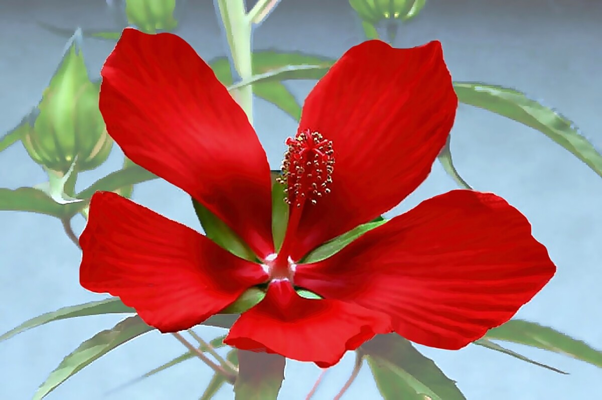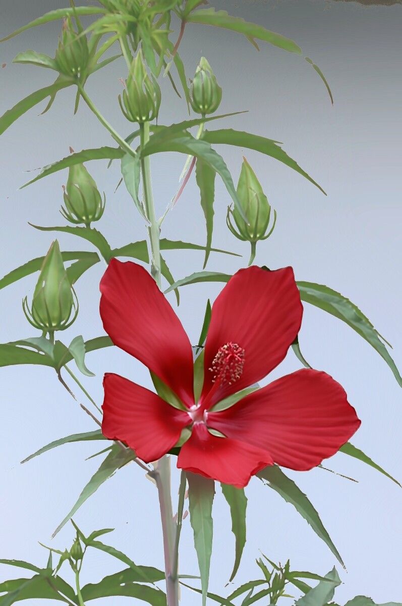 暑さの中で殊の外元気な姿で真っ赤な花を咲かせている『モミジアオイ』。
