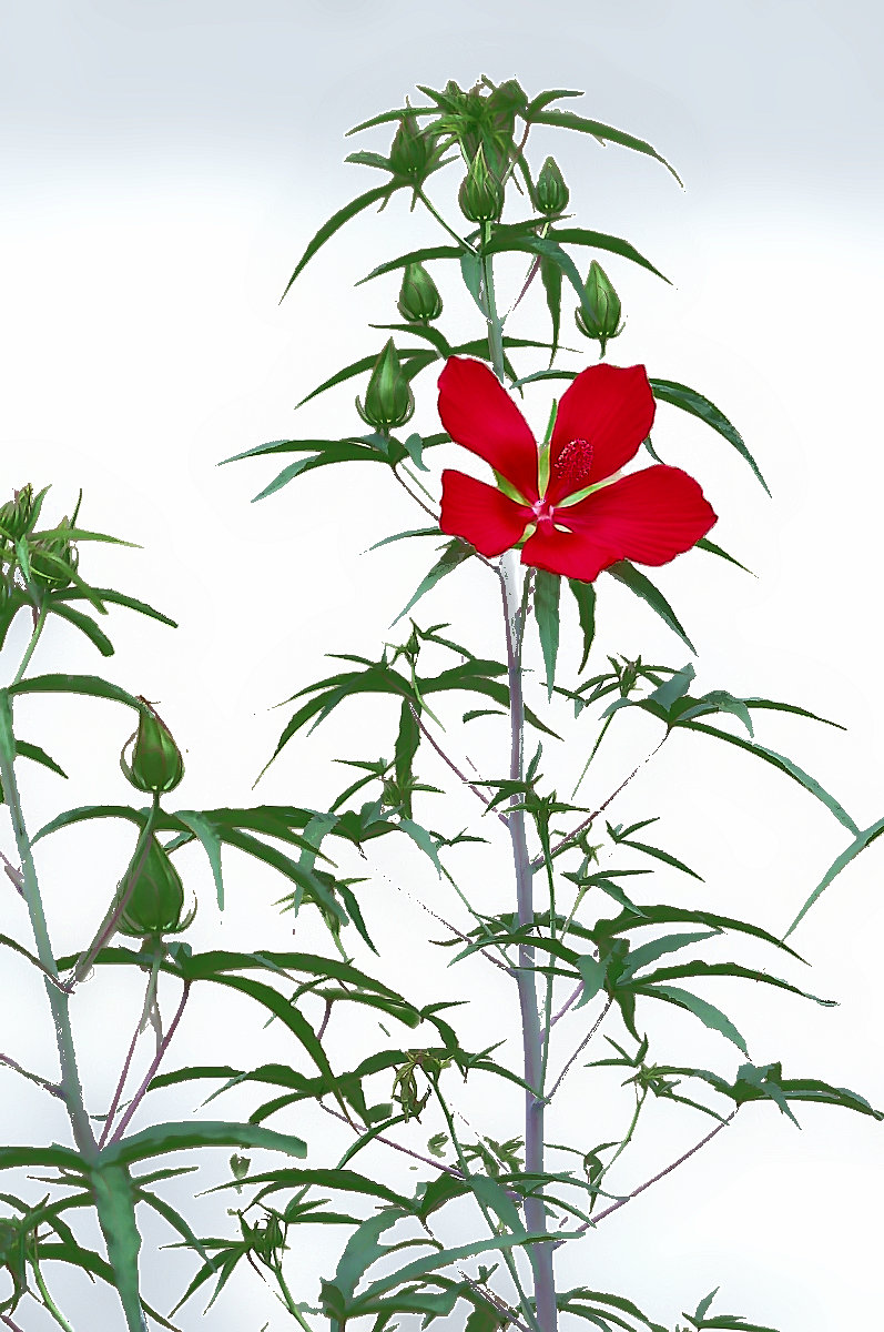この暑さのなかで、空へ向かってすくっと立ち上がるモミシアオイの花に、