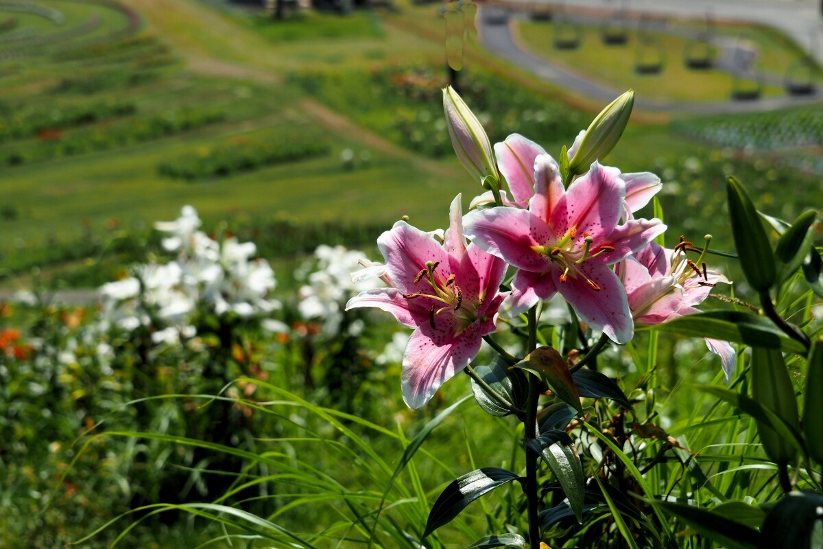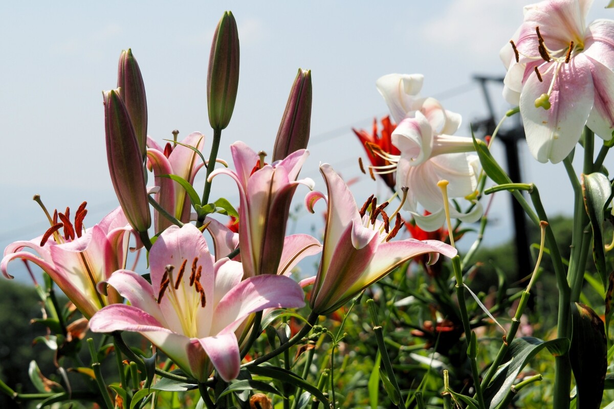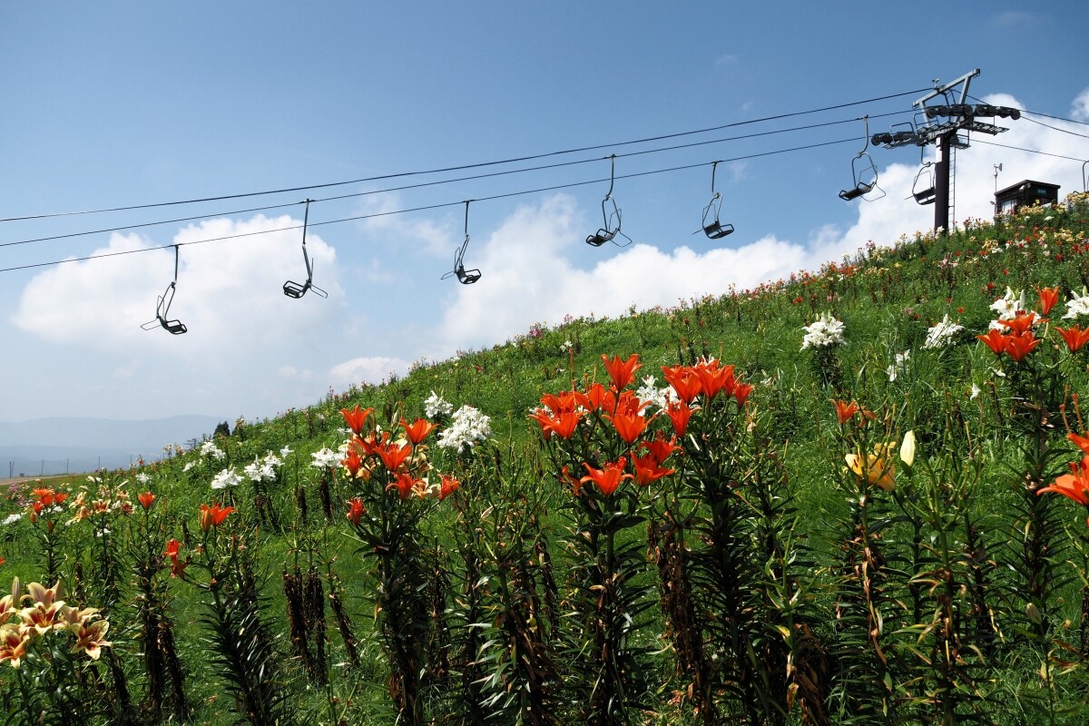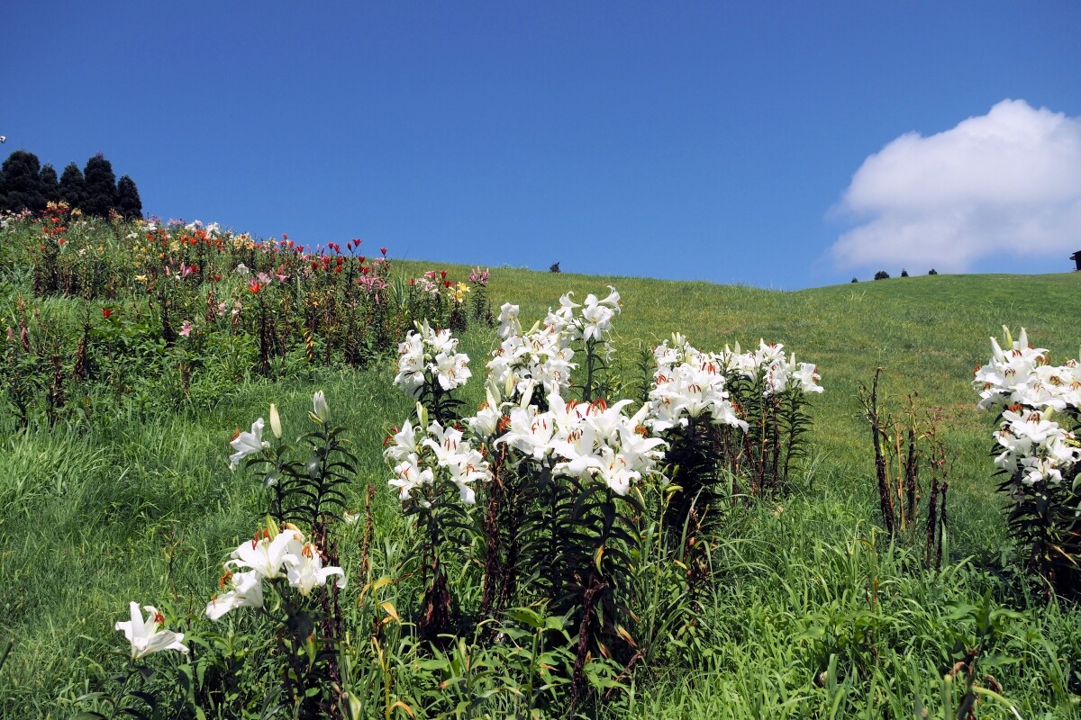 緩やかな斜面に広がる百合の花々。色彩が作る高原の風景。