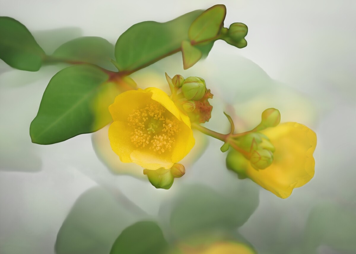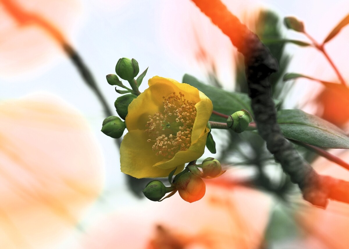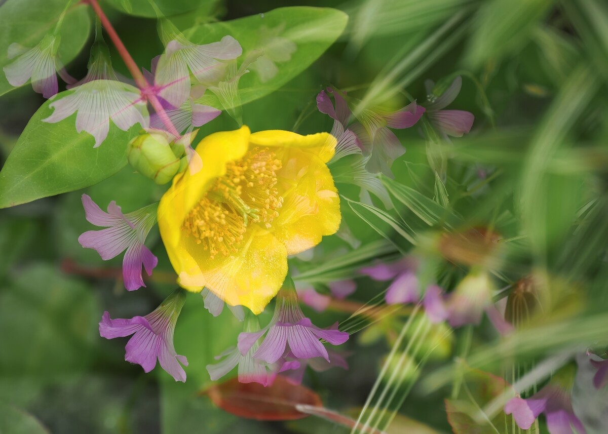 キンシバイのやわらかな光と質感を、幻想的に伝えたくて多重露出を試してみました。