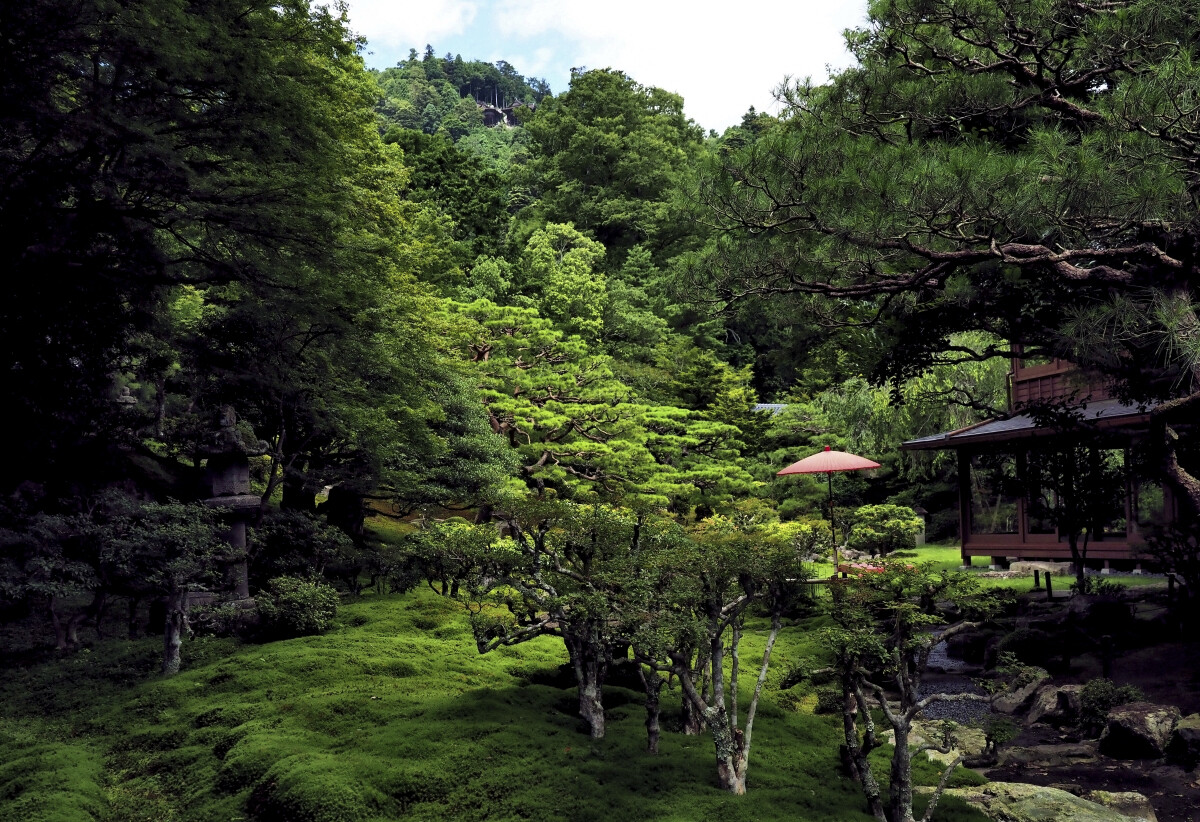 太陽の光が木々の間を縫うように差し込み、緑陰に浮かぶ庭の景色は、時の流れが止まったかのようでした。