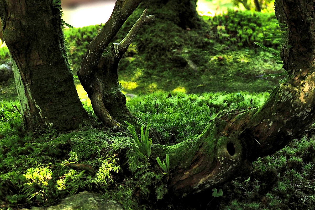 老木の根元にもびっしりと苔が茂り、歴史の重みを感じさせます。