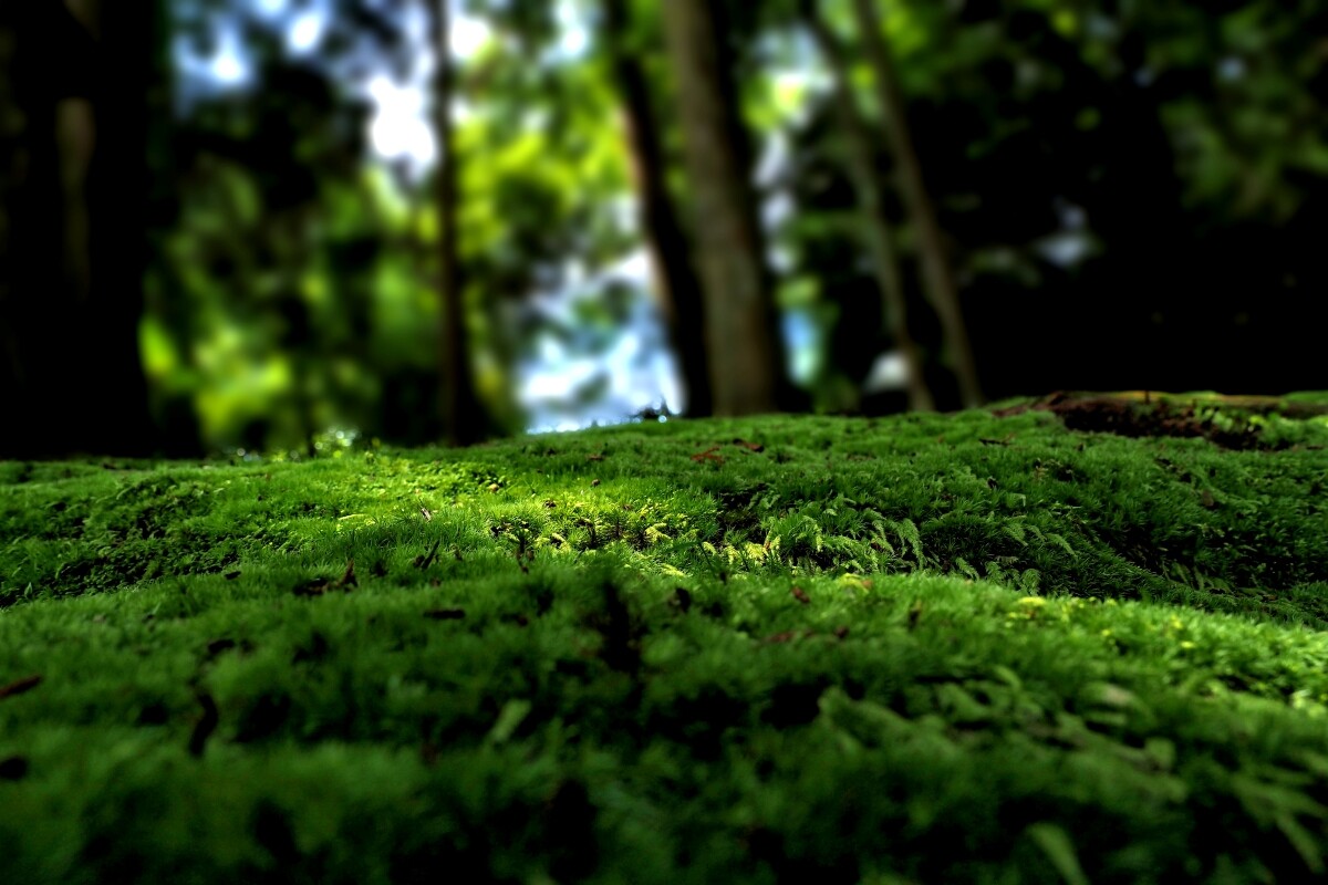 歴史を感じさせる苔に覆われた庭園