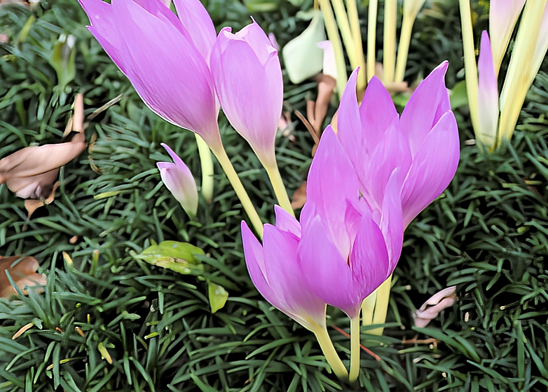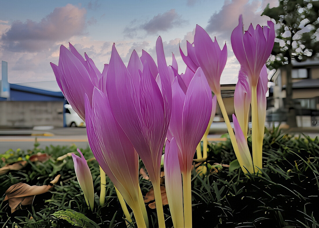 調べてみたら、この花、和名は「イヌサフラン(Colchicum autumnale)」と呼ばれる植物です。