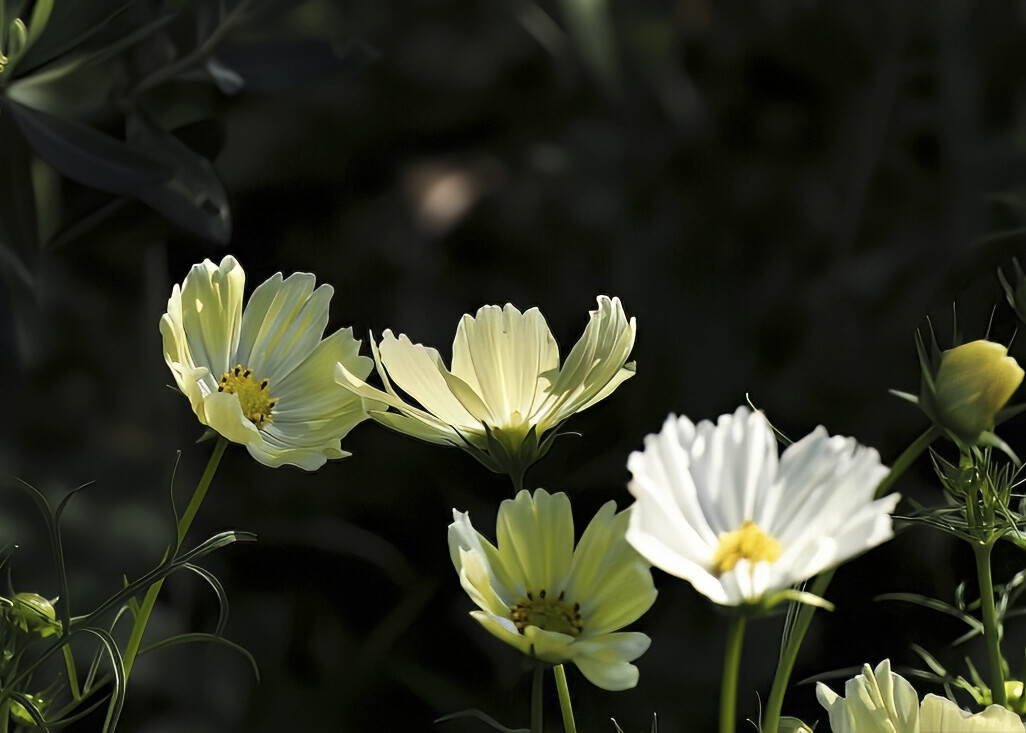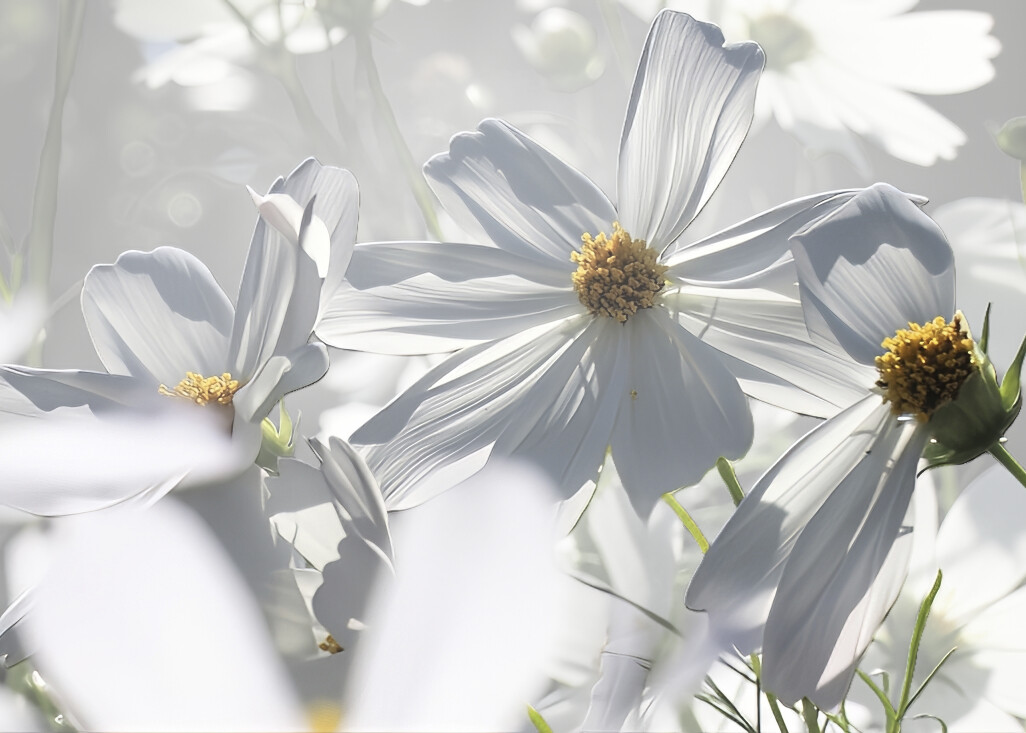 このコスモスたち、まるで光を受けて羽根のようですね」