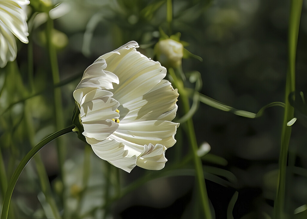 反り返らず、両手で何かを包むような白いコスモスが好きです。