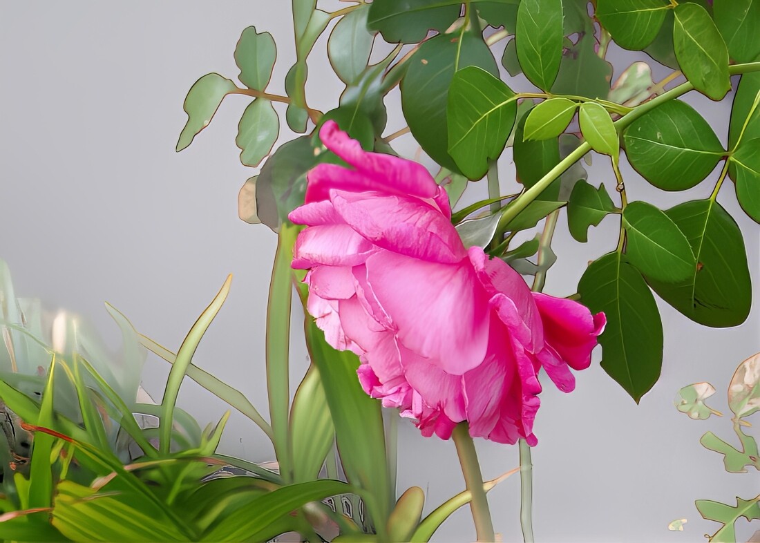 鮮やかなバラの出現に驚いた様子がよく伝わりました。