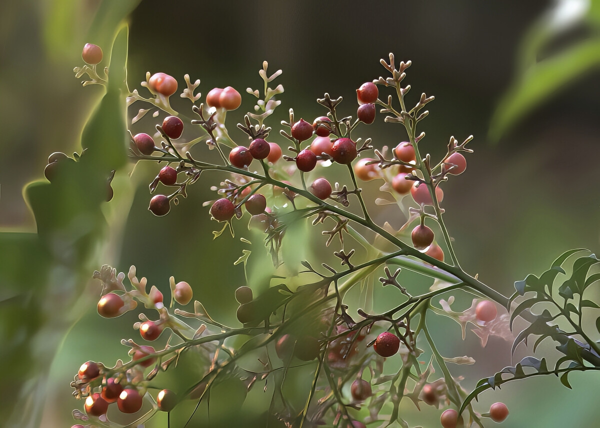 柔らかな背景のなかで、南天の実が浮かび上がるように映えていました。