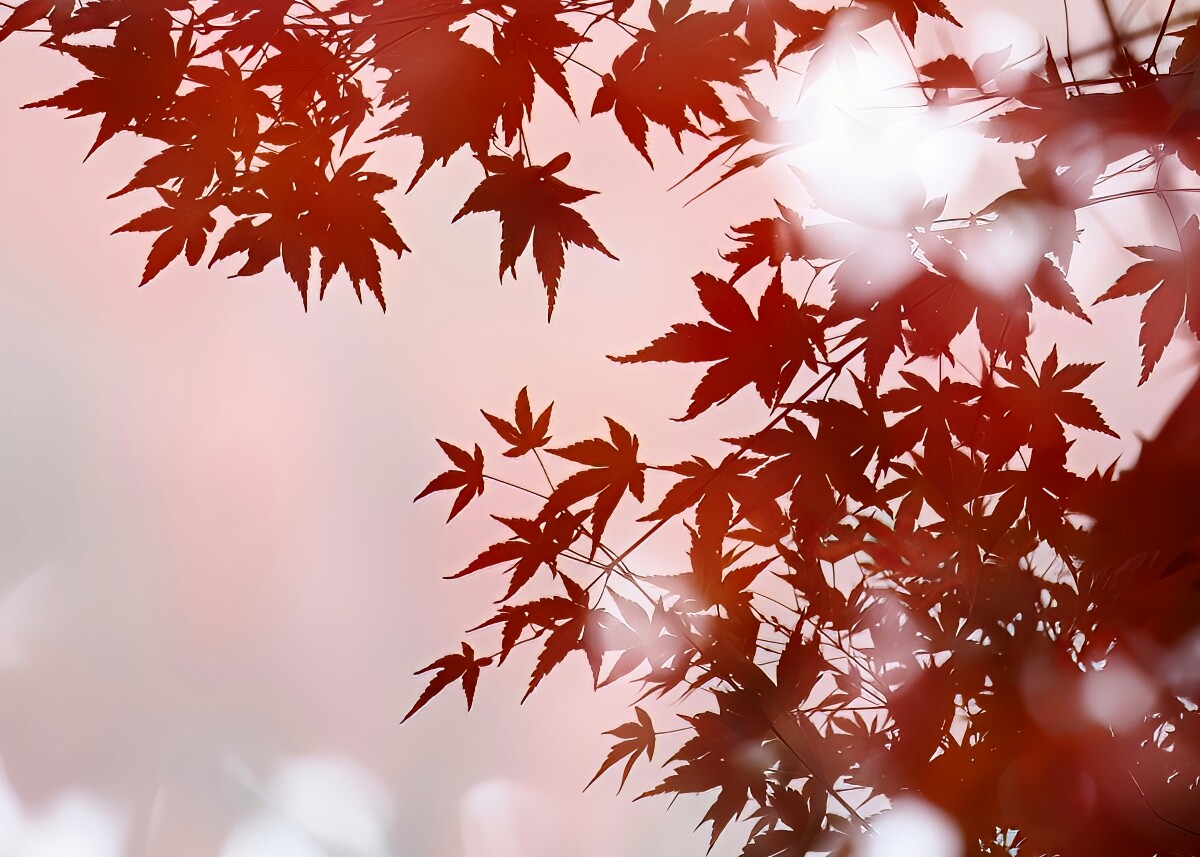 やわらかな光のなかで、赤い葉がそっと季節の深まりを知らせてくれます
