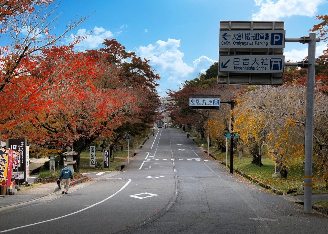 日吉大社から参道へと続く秋の景色は、まさに時の流れを感じさせてくれますね。