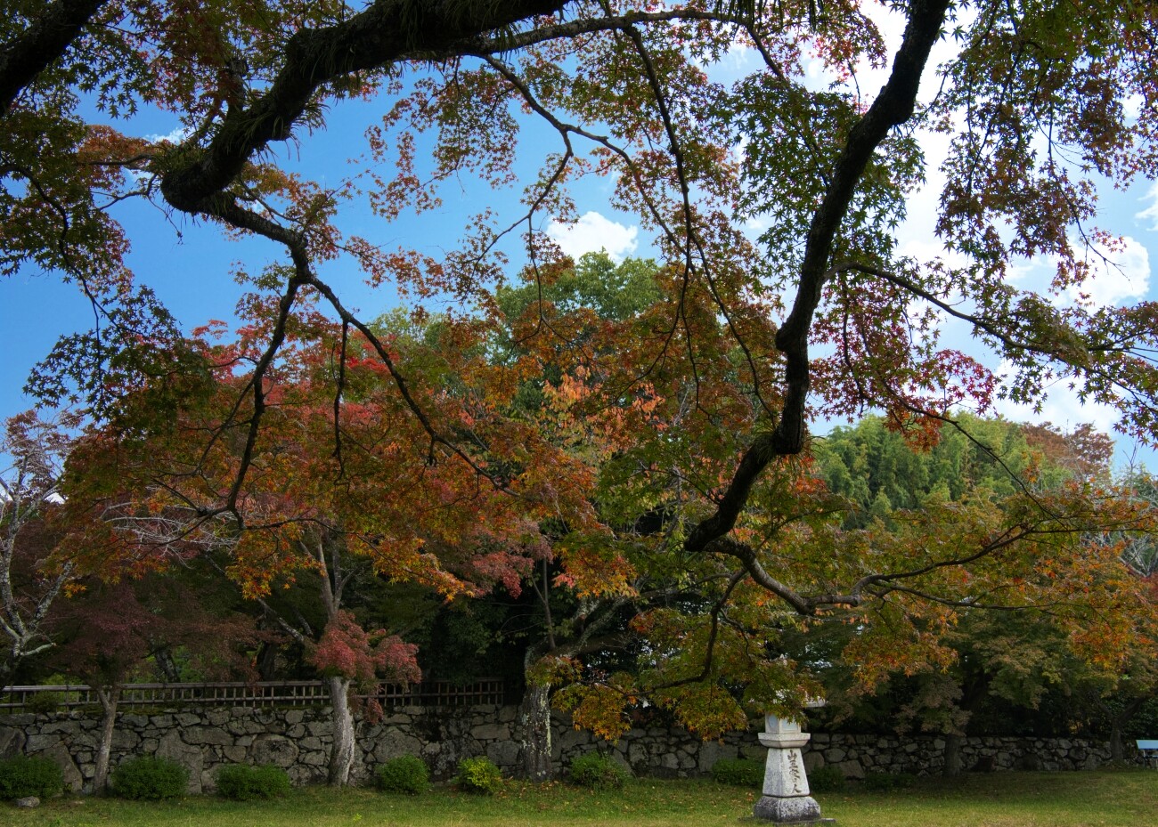 紅葉の大木が長い年月を感じさせ、遠い昔に思いを馳せる場所なのでしょう。